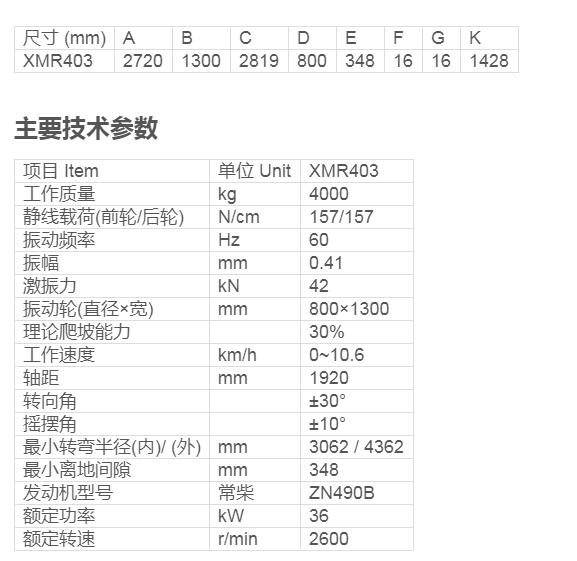 XMR403振動(dòng)壓路機(jī)是工作質(zhì)量為4噸的輕型振動(dòng)壓路機(jī)。該機(jī)適用于瀝青工程、水泥工程等表層壓實(shí)和路緣的壓實(shí)工作,也適用于底基層和基層,礫土和礫石材料的壓實(shí)作業(yè),是各種停車場(chǎng)施工、車行道、人行道和自行車道壓實(shí)以及各種道路維修保養(yǎng)工程中最理想的壓實(shí)機(jī)械。其特點(diǎn)是小振幅、高頻率,自身攜帶灑水裝置。該振動(dòng)壓路機(jī)還可以斷開(kāi)振動(dòng),代替靜碾壓路機(jī)進(jìn)行路面平整壓實(shí)和填土層預(yù)壓實(shí),這種型式的振動(dòng)壓路機(jī)較單輪振動(dòng)壓路機(jī),具有雙倍的壓實(shí)能力。